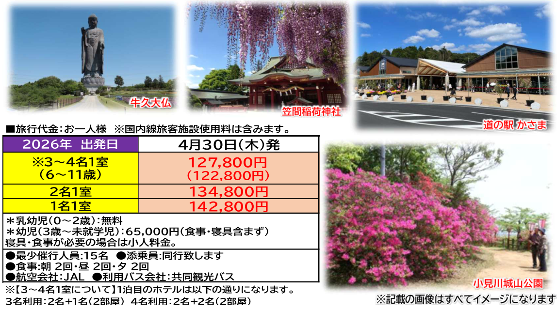 | 旅行日数 | 2泊3日 | 最少催行人数 | 15名 |