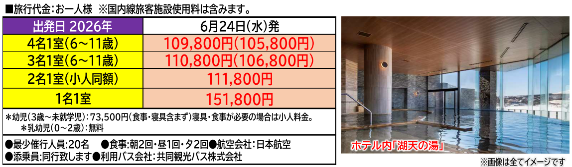 ※旅行代金には、諸税・サービス料が含まれております