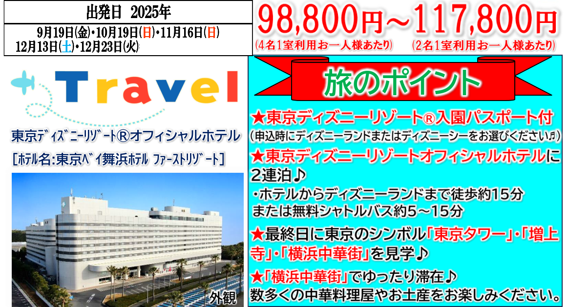 (※申込時にディズニーランドまたはディズニーシーをお選び下さい。)