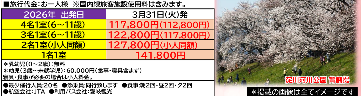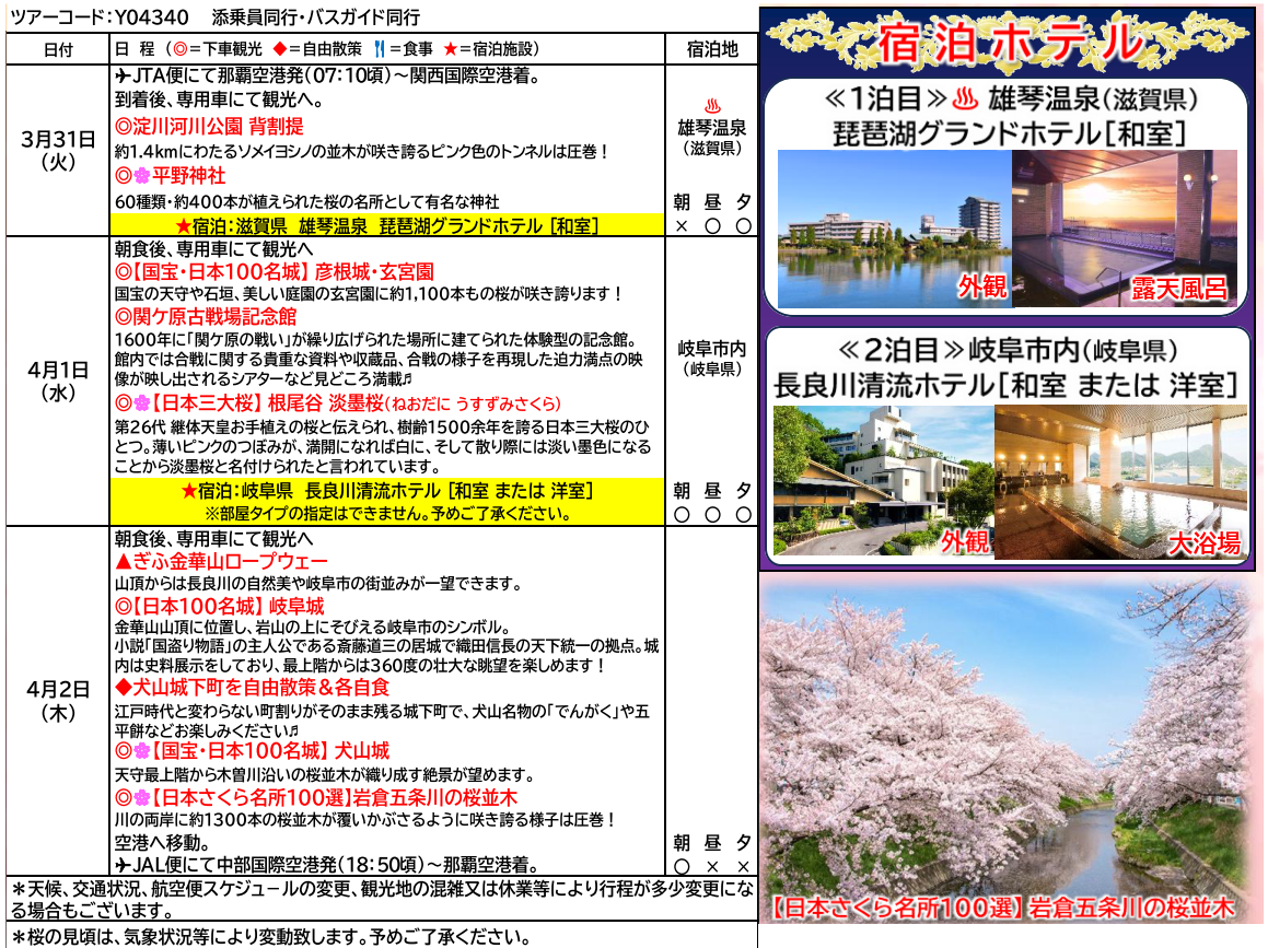 | 旅行日数 | 2泊3日 | 最少催行人数 | 20名 |